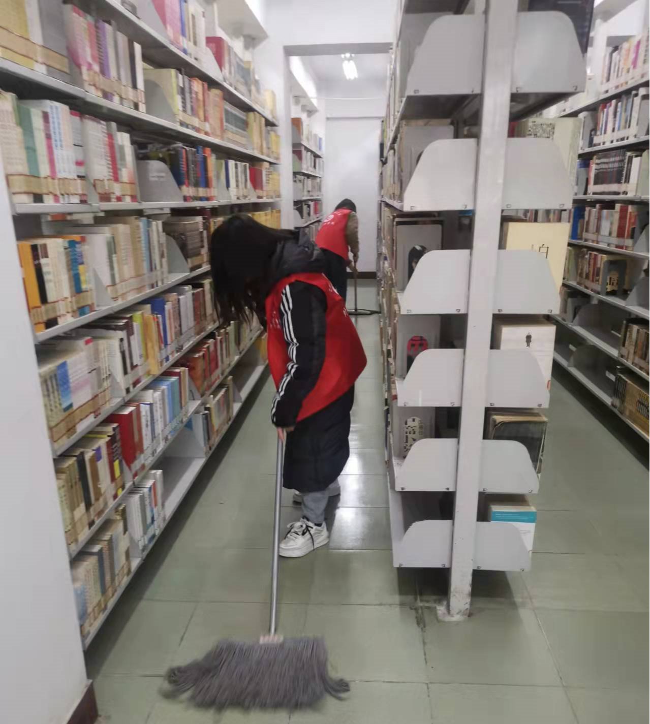 近日,外国语学院学生党支部的18位同学自发来到校图书馆开展公益劳动。图书馆读者工作部的老师们与同学们一起参加公益劳动。