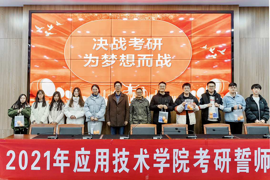 花开花落迎飞雪,又是一年考研时。2021年硕士研究生入学考试已进入倒计时。为了给考研学子加油鼓劲、缓解压力、增强信心,11月24日,应用技术学院在敦行楼报告厅隆重举行考研誓师大会。学院党委书记赵求勇、校友张拓宇出席会议,党委副书记时树奎主持会议,辅导员及2021年考研学生参加会议。