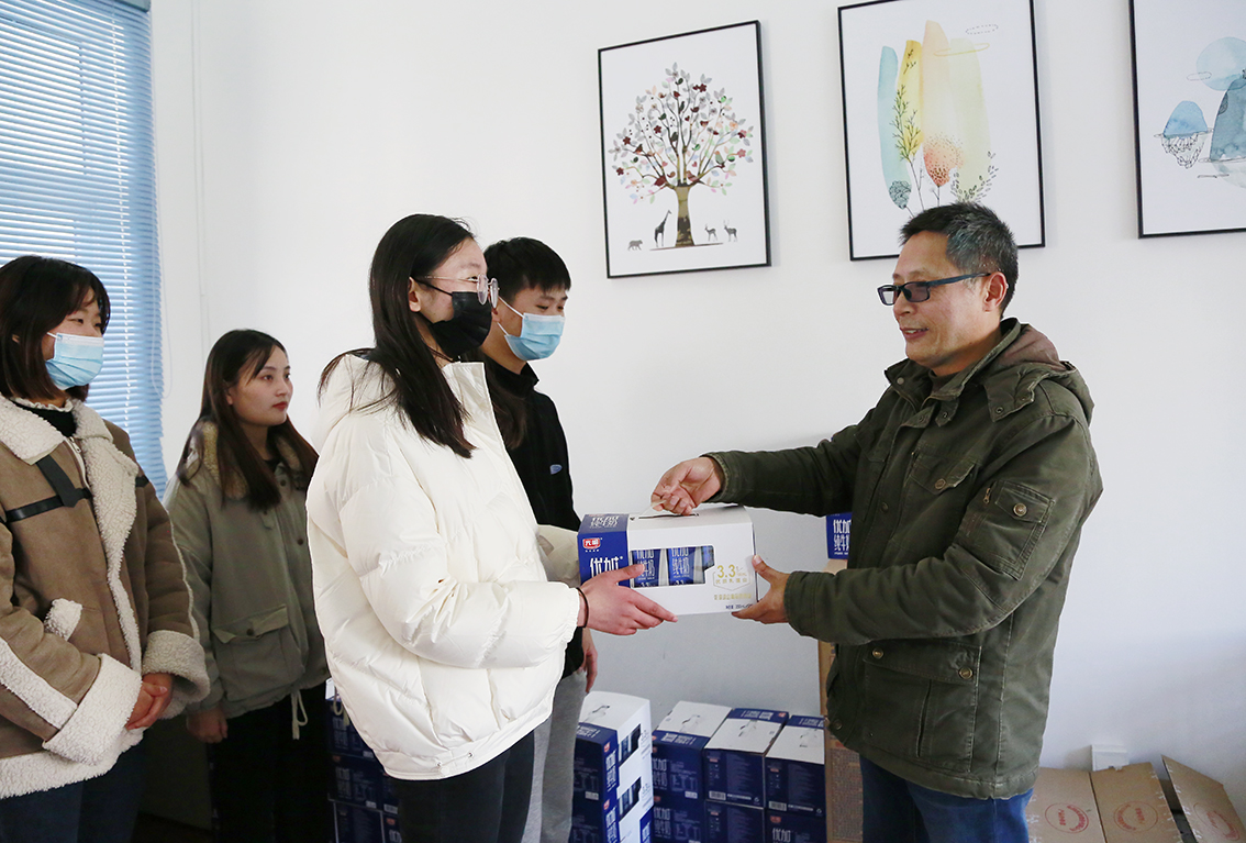 劳动结束后,时树奎为参加活动的学子们发放牛奶,对他们努力拼搏取得优异的学习成绩和积极参与校园环境整治劳动感恩学校的行为表示肯定。