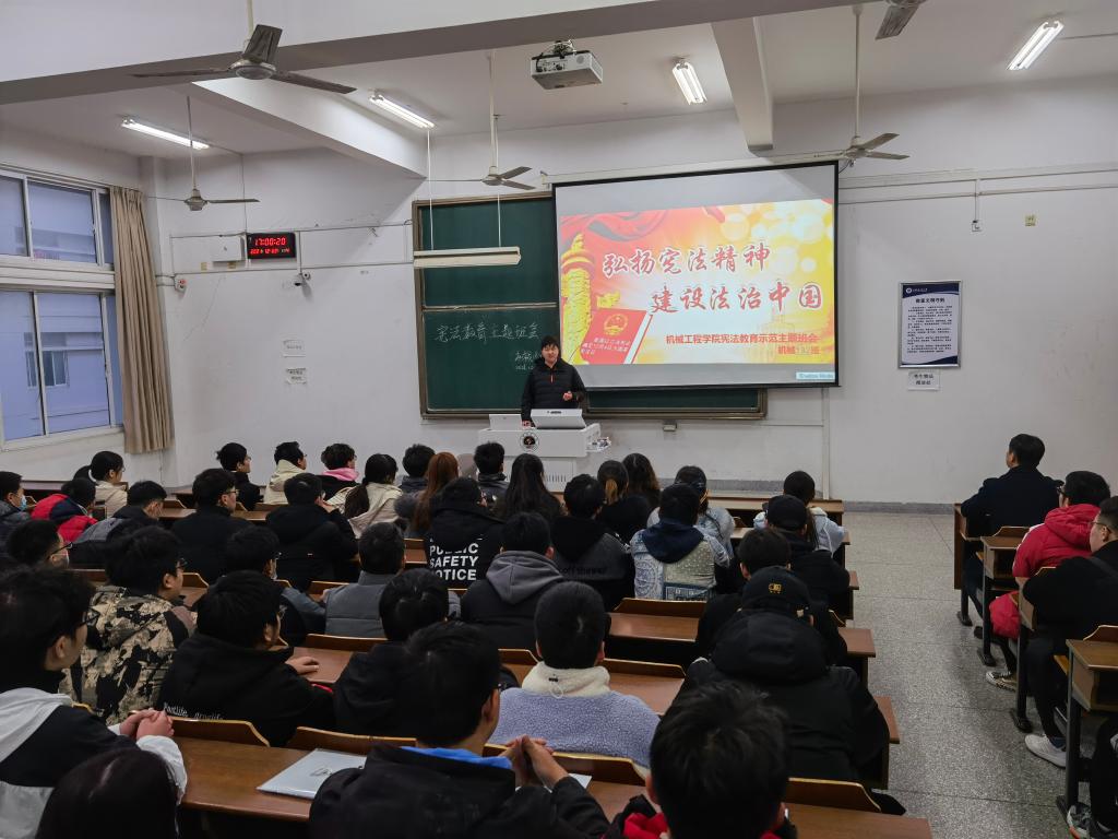12月2日下午,在国家宪法日即将到来,为普及宪法知识,加强法治教育,着力提升班级班会的重要作用,机械工程学院在文通楼303教室召开题为“弘扬宪法精神,建设法治中国”的宪法教育主题公开示范班会。本次班会由机械192班组织开展,学院党委副书记高勇、全体辅导员、部分班主任、各班级班长、团支书和学生代表到场观摩学习。
