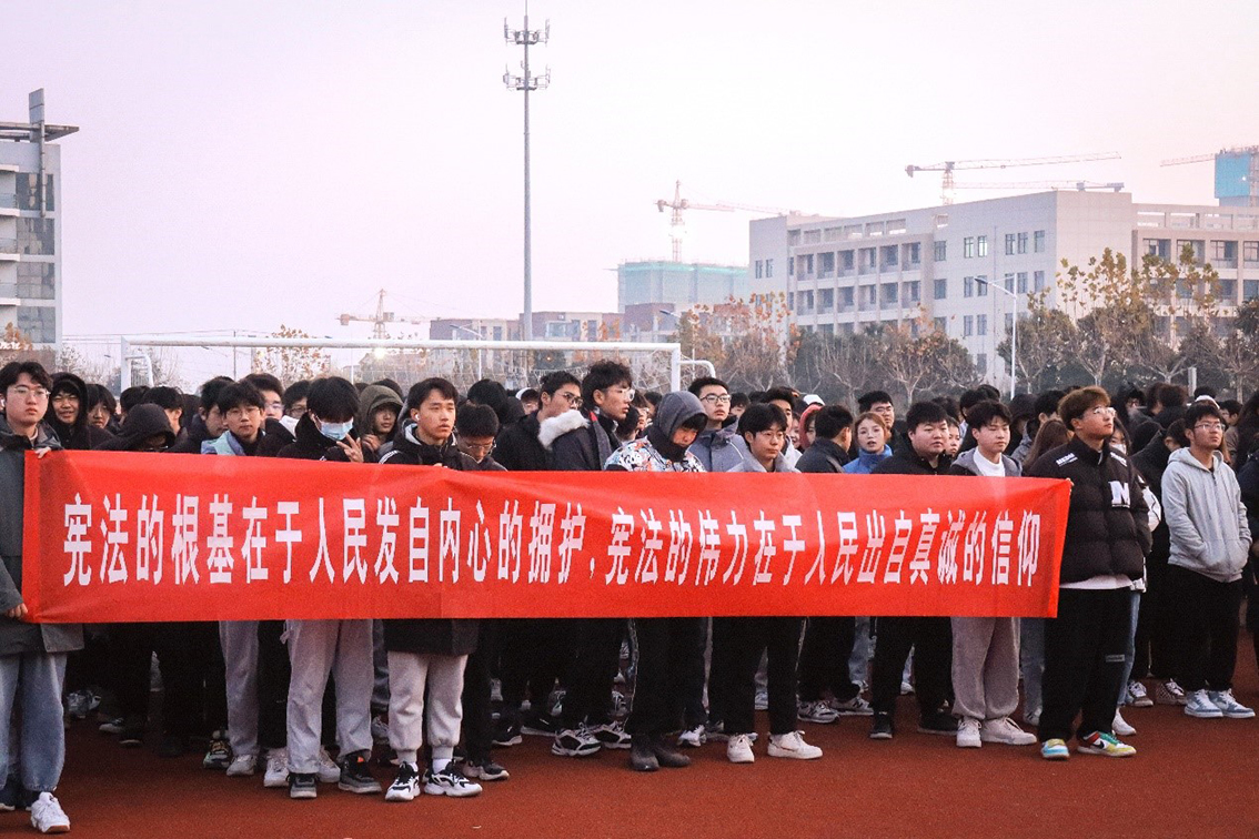 “中华人民共和国实行依法治国,建设社会主义法治国家。中华人民共和国公民在法律面前一律平等……”12月3日早上六点三十分,在庄严的升旗仪式结束后,宋跳校区运动场上传来了铿锵的朗读声。学院以“弘扬宪法精神 厚植爱国情怀”为主题的“宪法晨读”活动拉开帷幕。以声音为媒介,让精神由耳入心,让思想深入人心。严肃的表情、铿锵的声音,在同学们的心中播下遵守宪法、维护宪法的种子。