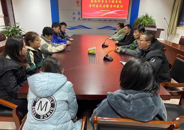 12月8日晚,食品科学与工程学院在主楼606会议室召开考研座谈会暨考研慰问活动,学院党总支书记田德勇、副书记郭利,学工办吴凡、陈丽媛及2018级考研学生参会。会议由郭利主持。