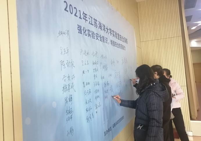 在活动开始前,与会领导和师生在实验室安全签名墙上签名。