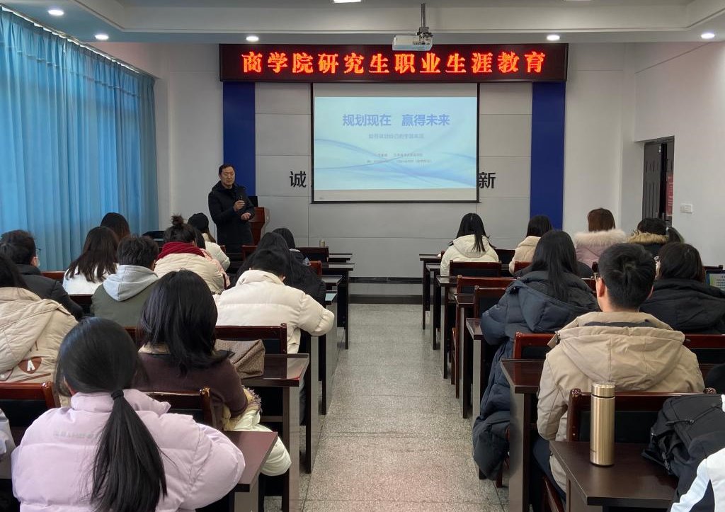 为贯彻落实习近平总书记关于研究生教育工作的重要指示精神,扎实开展研究生新生教育,帮助2021级研究生合理谋划学涯生活,12月17日,商学院在文渊楼357室举行“规划现在,赢得未来”职业生涯教育讲座。本次讲座由商学院党委书记万金店主讲,2021级全体研究生参加。