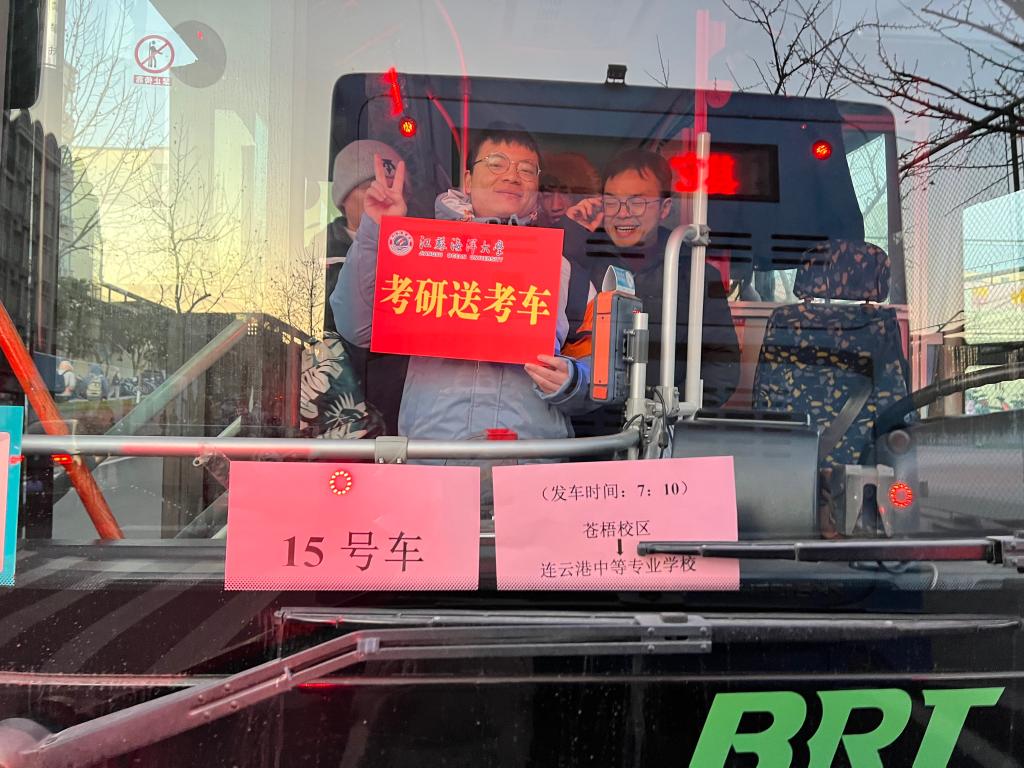 送考服务助起航。12月25日、26日,学生工作处联系市公交公司、客运公司,为我校考生安排了考研送考服务。,学生工作处提前统计考点人员分布,合理规划送考路线,组织动员各方面力量协同配合,顺利将近900名考研学生安全送达我市7个考场,极大地为考研学生们提供了便利和帮助,充分展示学校对考研学生的关怀与帮助。