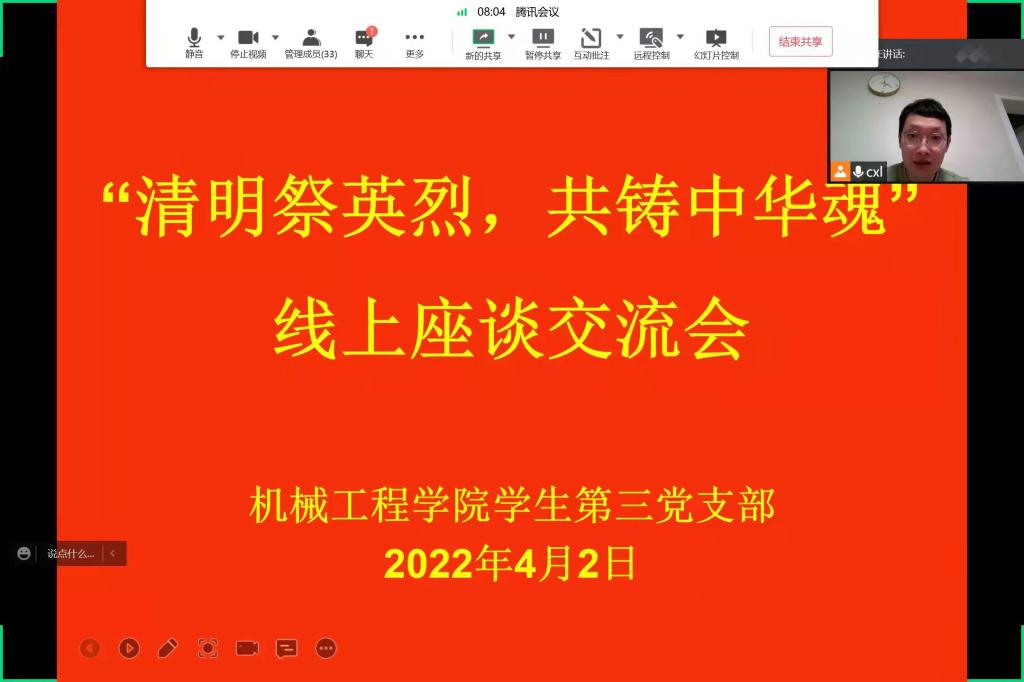 在疫情防控期间,为缅怀革命先烈,继承革命先烈的光荣传统,机械工程学院组织广大本科生和研究生充分利用互联网、新媒体以“云祭扫、缅英烈、微心话、寄哀思”为主题,采取“云献花”“云参观”“云团课”“云推送”“微心话”,以及主题党日活动等多种方式开展了清明节云缅怀系列活动。