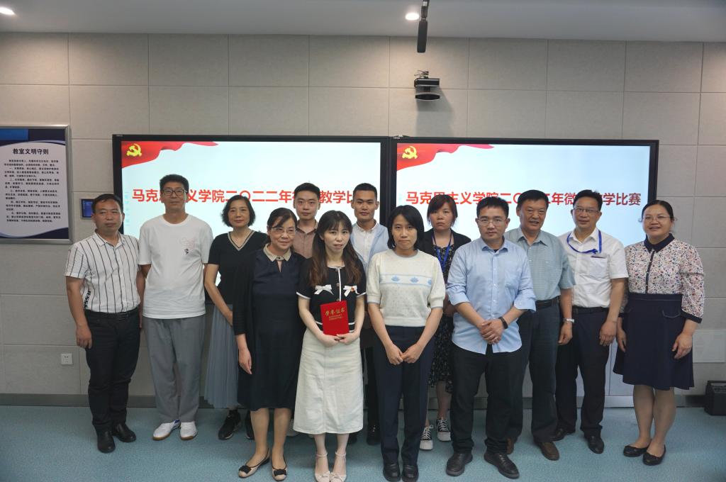 为进一步提升教师教学水平、遴选优秀作品参加学校2022年微课教学比赛,6月10日下午,马克思主义学院在文华楼智慧教室举行了2022年微课教学比赛。校党委常委、宣传部部长杨雪英、校教学督导组组长刘平昌、教学质量处处长乔斌、教务处副处长徐国想及马克思主义学院周桂芹教授担任比赛评委,马克思主义学院全体教师观摩了比赛。