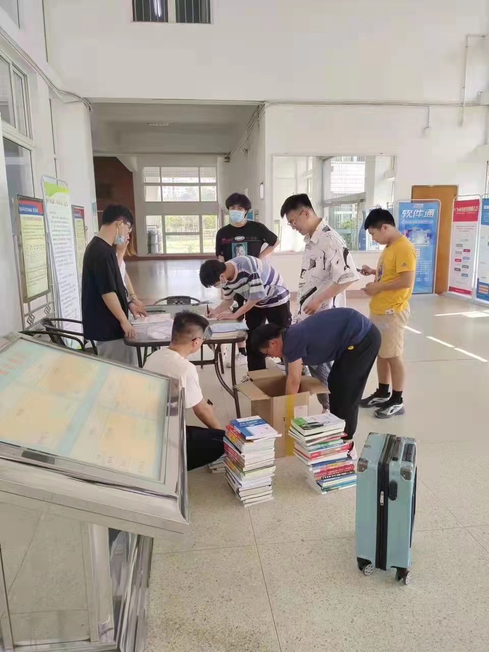 捐书活动得到了同学们的热烈响应,有位同学面对到宿舍楼下收书的老师激动地说:“太好了,我们的书太多啦,正愁怎么运过去呢,你们太贴心了!”有一名同学在清点捐赠图书时,找出了几本打印装订的资料:“老师,这个可能不太符合要求,但真的特别宝贵,是我们自己总结出来的重点,买都买不到呢”,老师们表示这些珍贵的资料可以放置于图书馆的爱心书架供学弟学妹们取阅。