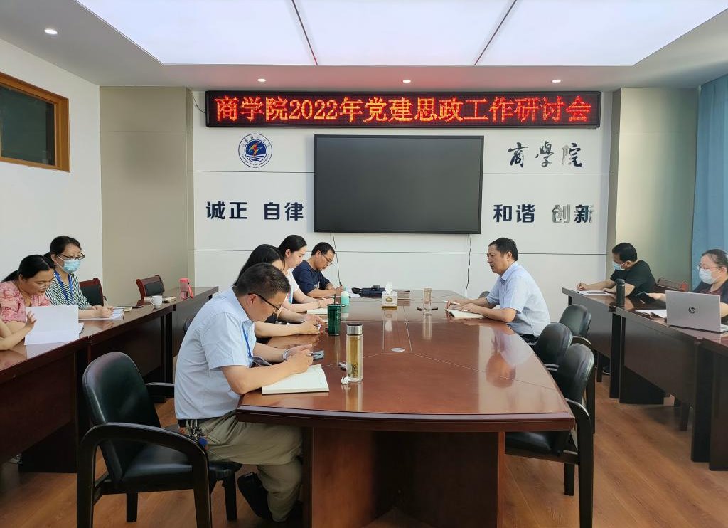 7月3日下午,商学院在文渊北楼355召开2022年党建思政工作研讨会,传达、学习了校中层干部培训会议精神,探讨了如何推动学院党建和思想政治工作高质量发展,会议由学院党委书记万金店主持,学院党委副书记、教工党支部书记、学生党支部书记、团学工作负责人参加了会议。