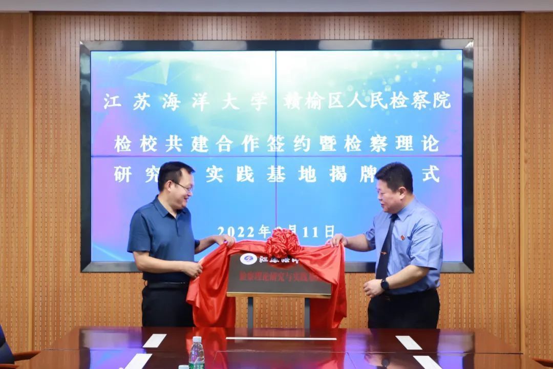 8月11日上午,文法学院和赣榆区人民检察院在赣榆举行检校共建合作签约暨检察理论研究与实践基地揭牌仪式。