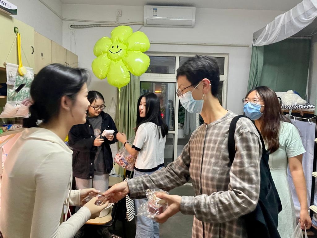正值中秋假期,学校、学院贴心地为新海宝们准备了月饼和水果。让同学们在校也能感受到“家”的温暖。“家住哪里,来到学校还适应吗?住宿条件还满意吗?”走进新生男生寝室,田德勇细询新生们的生源地、对专业的认知和来校生活的适应情况,勉励同学们要志存高远、脚踏实地,继续保持良好生活习惯,要多读书,刻苦学习,和室友、同学之间处理好关系。他还提到:“外语学习并非一朝一夕,小语种零基础的同学更需要在大一好好学习,夯实基础。”