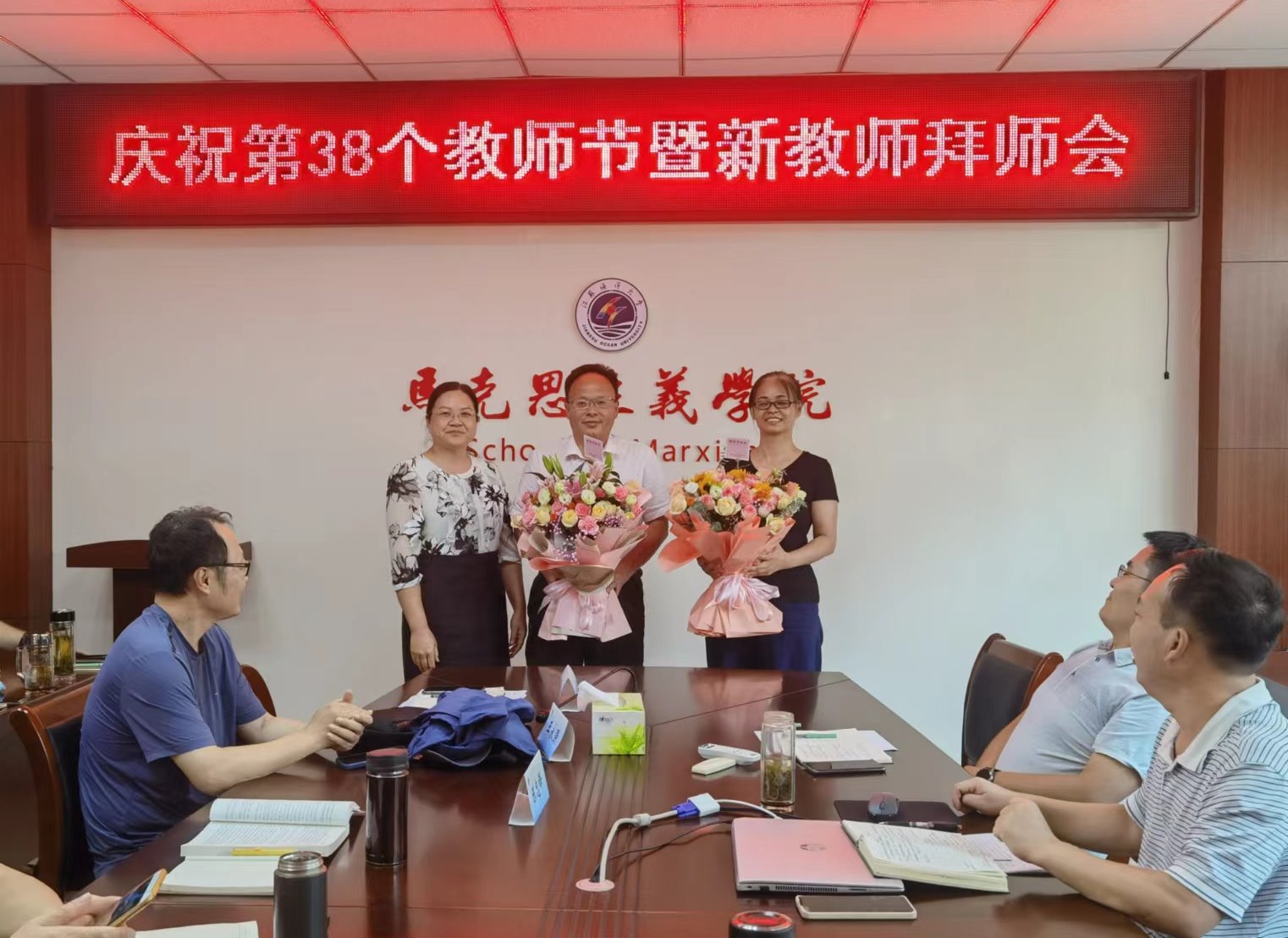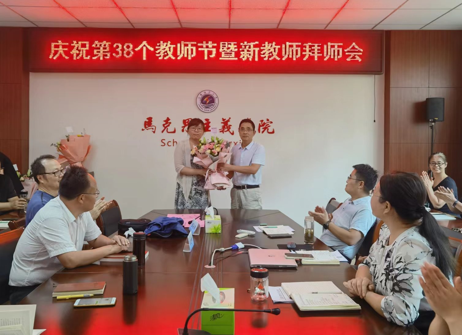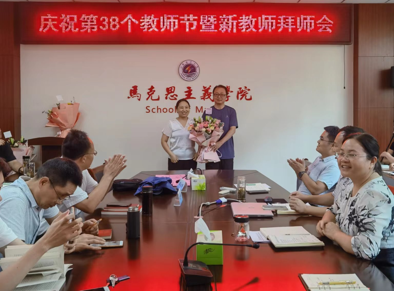 金秋送爽,丹桂飘香,为弘扬中华民族尊师重教的传统美德,激励广大教职工热爱教育事业,9月7日下午,在教师节前夕,马克思主义学院举行了“庆祝第38个教师节暨新教师拜师会”,学院全体教职工参加了本次会议,会议由王波书记主持。
