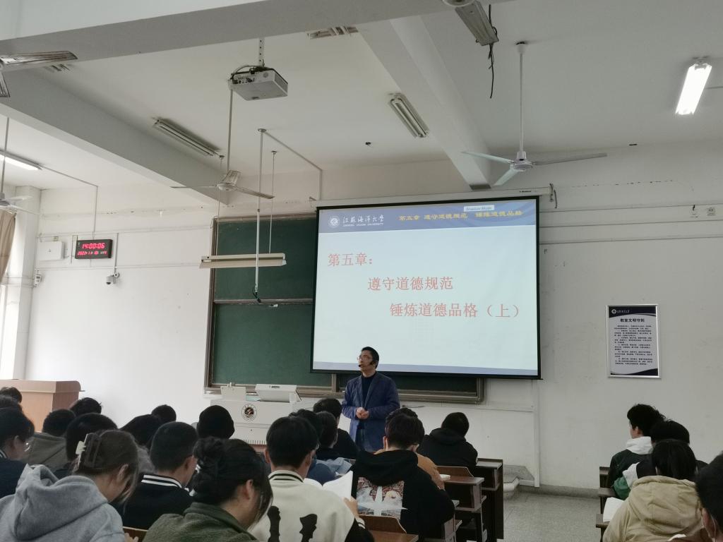 11月5日上午第三节课,习近平新时代中国特色社会主义思想概论教研室的朱凌云老师以“以人民为中心”为主题,讲解了以人民为中心的核心内涵与价值指向;11月8日上午第三节课,马克思主义基本原理教研室的王永强老师以“孝之道”为主题从社会意识层面讲解了社会意识对社会存在的作用;11月10日下午第一节课,思想道德与法治教研室的宋忠好老师以“社会主义道德的核心与原则”为主题向大家展示了如何认识社会主义道德。