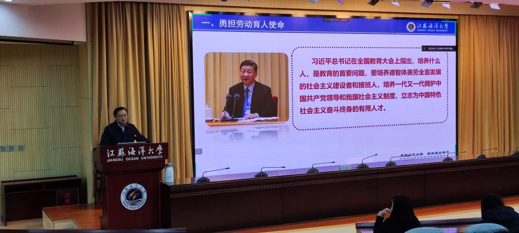 12月13日下午,副校长严云洋在会议中心黄海厅,以“新时代劳动教育生态体系建设”为题讲授党课。教务处、教学质量管理处(教师教学发展中心)、劳动教育实践中心、继续教育学院、工程训练中心、图书馆、学术期刊社全体党员,及计算机工程学院、体育学院党政领导班子成员、各学院教学院长,通过线上、线下方式参加了党课学习。