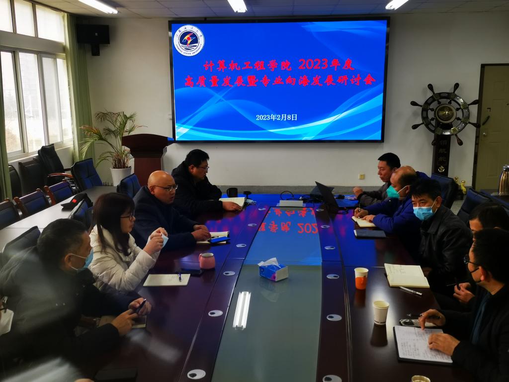 为进一步推动学科专业向海发展,努力寻求信息学科与海洋学科的契合点,使学院的高质量发展迈上一个新台阶,2月8日下午,计算机工程学院在306会议室召开“2023年度高质量发展暨专业向海发展研讨会”。学院领导班子全体成员及各系(室)党政负责人参加会议,会议由院长仲兆满主持。