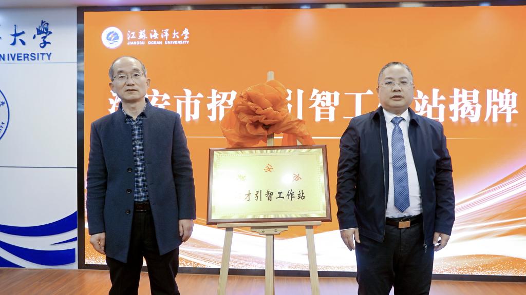 骆海宏和钟晓卫为江苏海洋大学就业实习实践基地揭牌