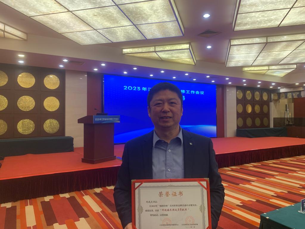 3月6日下午,江苏省科技厅召开2022年度全省技术转移工作会议。会议全面总结了2022年度全省技术转移工作,研究部署2023年度工作重点,并对2022年度在全省技术转移工作中做出突出贡献的先进单位、个人等予以表彰。机械工程学院刘成文老师荣获“科技镇长团成员贡献奖”,刘成文老师参加会议并领取了荣誉证书。