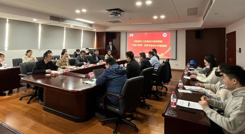 “卓越工程师”培养计划是江苏海洋大学药学院与江苏恒瑞医药股份有限公司在江苏省重点产业学院生物医药产业学院基础上,为推进和深化校企产教融合实施的新型人才培养模式。开题答辩会上,孙涛代表药学院对于首期“卓越工程师”培养计划如期开题表示祝贺,希望通过“卓越工程师”培养计划实施,为学校生物医药产业学院建设夯实基础,为企业培养“留得住、基础牢、上手快、后劲足”高质量应用型专业技术人才。