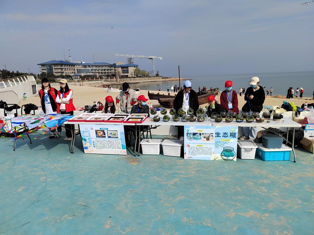 活动期间,学院志愿者还举行了海洋主题风筝放飞活动,将传承中华优秀传统文化与宣传海洋文化相结合。同学们将前期绘制的各色海洋主题画的风筝逐一放飞,既体验了海边春光的美好和大自然的生机勃勃,也表达了同学们对海洋文化的向往,空中翩翩起舞的纸鸢不仅代表着同学们美好生活的向往,更是展翅翱翔海洋梦的生动诠释。