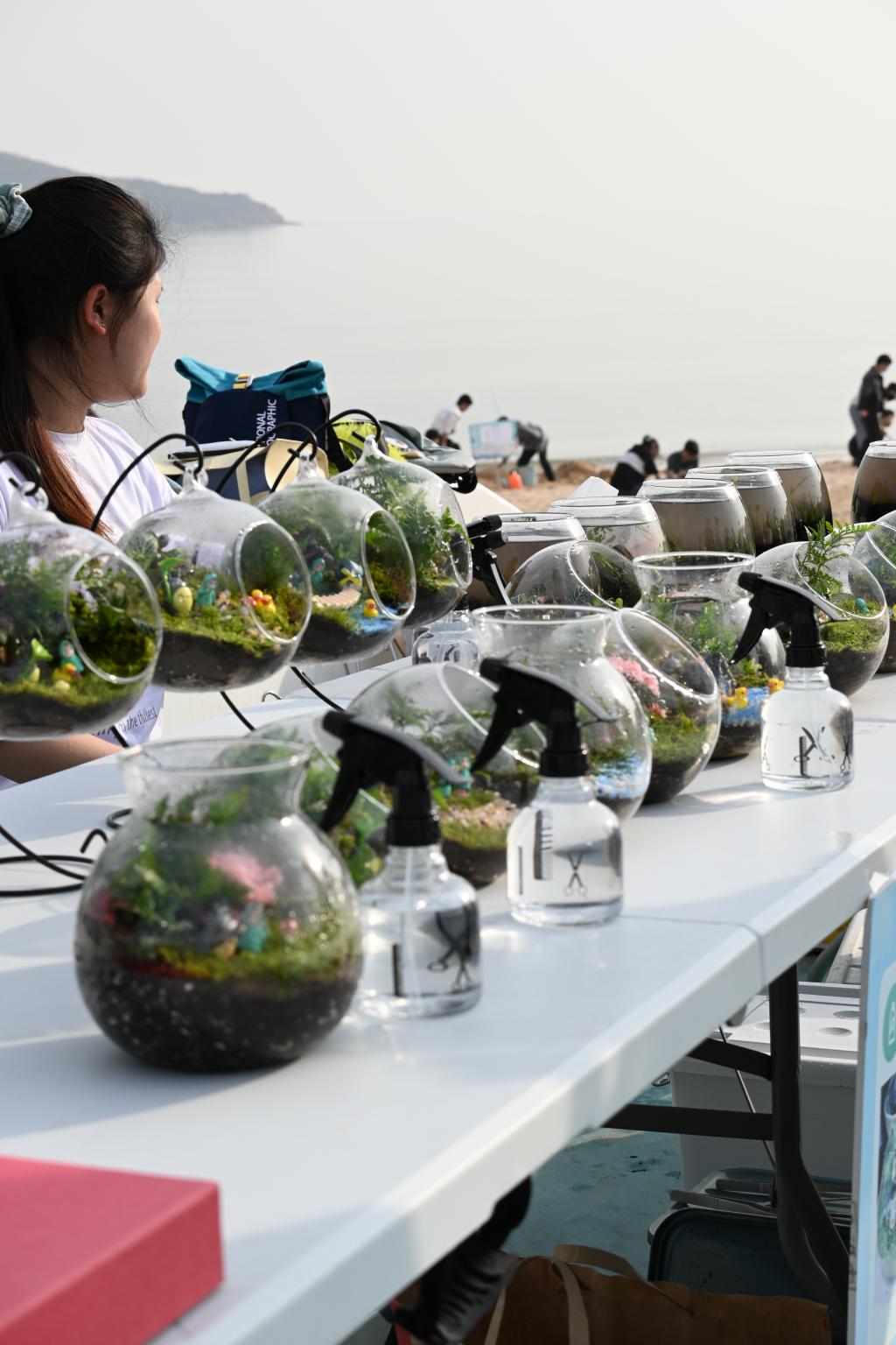 活动现场同步展示了非遗文化作品——海洋生物造型贝雕,志愿者们在活动现场向市民发放海洋环保宣传单、增强大众保护海洋环境的意识,开展海滩清洁志愿服务活动。