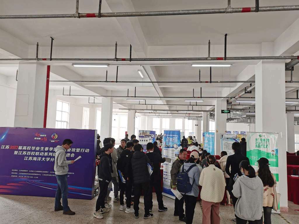 江苏2023届高校毕业生春季促进就业攻坚行动暨江苏百校联动系列招聘推进会于3月19日启动,同日,江苏海洋大学分会场于苍梧校区D区筑海楼就业市场同步举办。