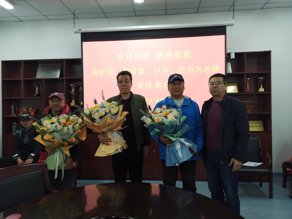 院长赵宏为四位老教师送上了鲜花,感谢他们对学院发展做出的贡献,恳请他们发挥余热,继续为学院发展献计献策。