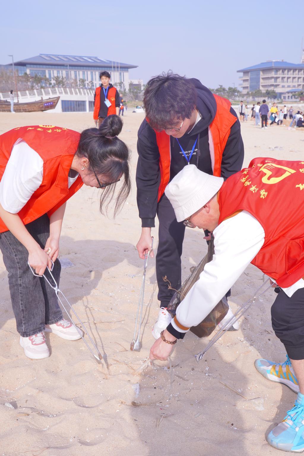 3月中,学院志愿者服务中心联合学生党员工作站开展了海滩清洁志愿活动。一场清洁海滩“战役”在美丽的海州湾西墅沙滩悄然展开。志愿者们集合领取垃圾袋、钳夹等工具后,三五成群、四五作队,分工合作。二十余名志愿者身穿红马甲,沿着海岸线对海州湾海滩以及绿化带进行地毯式清理。废旧渔网、烟头、塑料瓶、快递盒等垃圾杂物都被一一清理。志愿者们脸上流淌着汗水,弯腰捡拾的身影在广阔的海滩随处可见,志愿者还积极向来西墅海湾游玩的游客宣传海洋环保知识,发放宣传册,劝导各类不文明现象,号召游客一起爱护环境,以实际行动践行雷锋精神,呼吁大家共同守护好美丽的海岸线。