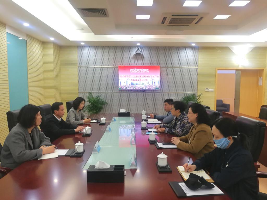 在会议中心召开工会工作调研座谈会,李梅英对刘章程书记一行的到来表示热烈欢迎,并介绍了我校基本概况、办学历史和近年来的发展情况。校工会主席万洁从教职工思想政治引领、民主管理、权益维护、文化活动、自身建设等方面对我校工会工作做了详细汇报。刘章程充分肯定了我校的高质量发展和学校工会工作取得的成绩,并表示将一如既往支持我校工会工作,积极配合学校为社会培养更多的高质量人才,更好地服务地方经济社会发展。