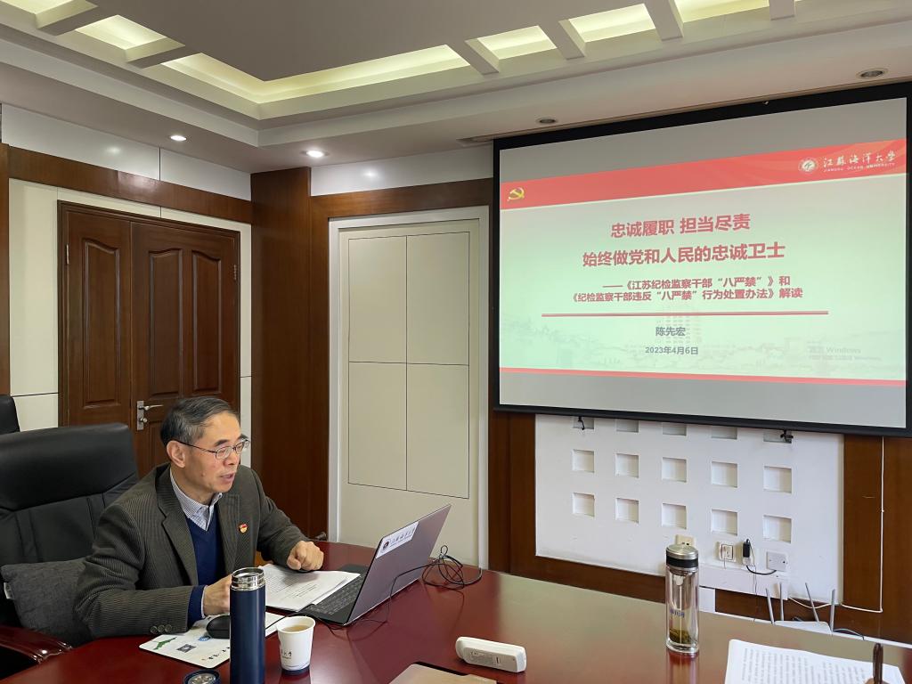陈先宏紧紧围绕“忠诚履职 担当尽责 始终做党和人民的忠诚卫士” 这一主题,从充分认识开展教育整顿的重大意义、详细解读《江苏纪检监察干部“八严禁”》和《纪检监察干部违反“八严禁”行为处置办法》、深刻汲取案例警示教训、锻造忠诚干净担当的纪检监察铁军四个方面,为大家作了一场主题鲜明、内容丰富、立意深刻,引人深思的廉政教育报告,对全体纪检监察干部增强廉洁自律意识,筑牢思想防线、提高拒腐防变能力,具有很强的指导意义。纪律规矩是纪检监察干部的立身之本,陈先宏要求大家将纪律规矩学深悟透,牢固树立法治意识、程序意识、证据意识,学思贯通,知行合一,全面提升监督执纪执法能力,用实干笃行来诠释纪检监察干部的担当精神。