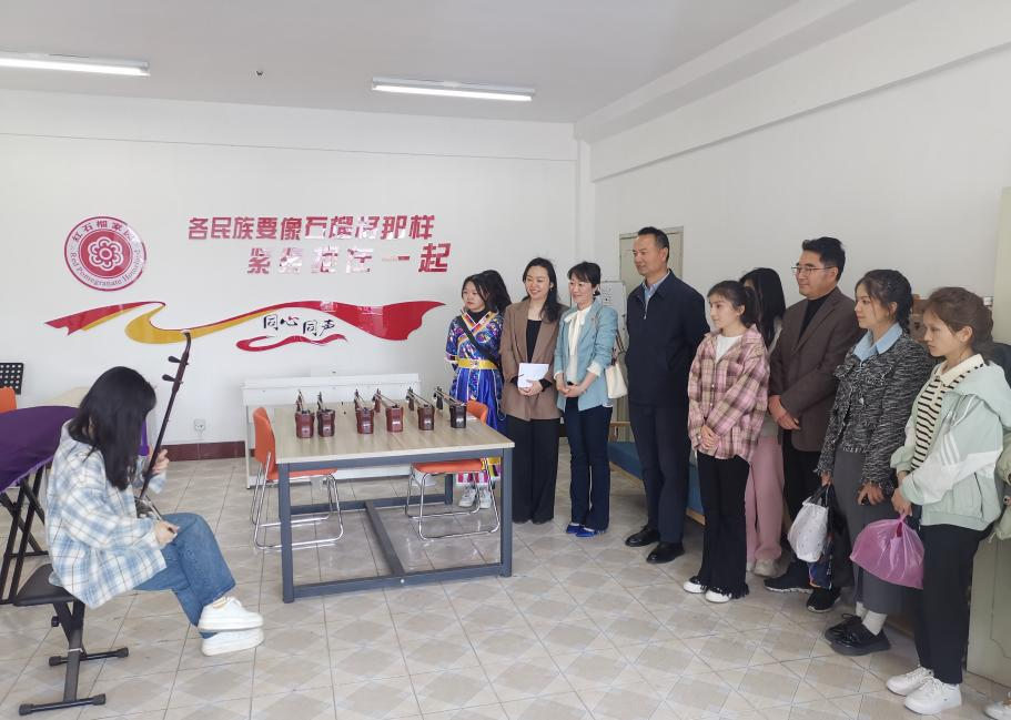 师生一行还实地参观我校“红石榴家园”,两校少数民族学生开展了乐器演奏、民族舞蹈等互动交流活动。