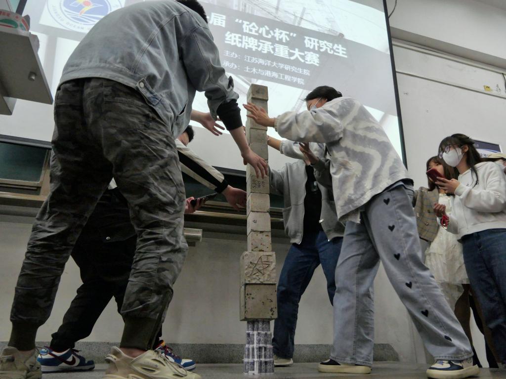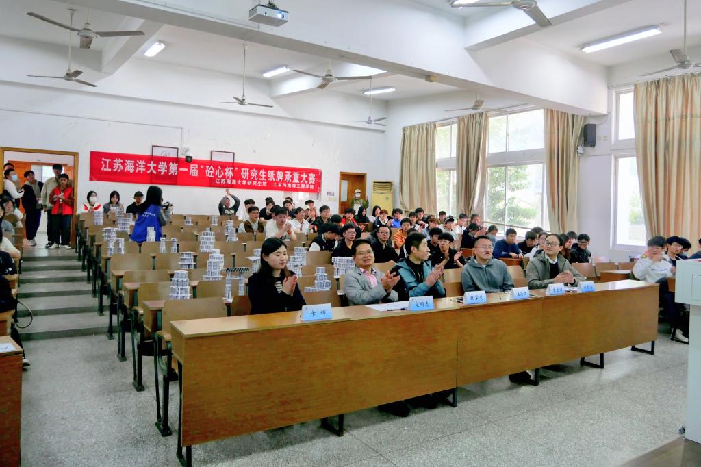 大众创业,万众创新。为积极响应国家号召,打造校园里的创新环境,激发同学们的创新活力,4月16日,江苏海洋大学第一届“砼心杯”研究生纸牌承重大赛于文通楼124成功举办。本次大赛的主题为“纸牌创想 结构筑梦”,由江苏海洋大学研究生院主办,土木与港海工程学院承办。大赛形式为参赛选手使用纸牌、胶带现场搭建可承重创新结构,意在为各学院学生搭建一个理论联系实际的动手实践平台,以进一步培养和提升学生的创新思维和学习兴趣,丰富校园文化生活。