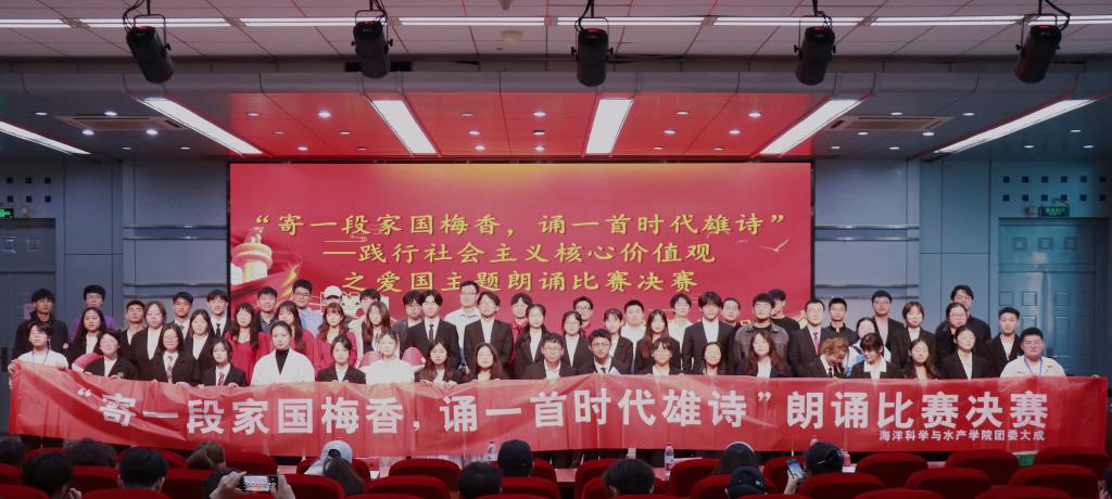 4月19日下午,海洋科学与水产学院“寄一段家国梅香,诵一首时代雄诗”爱国主题诗歌朗诵决赛在艺术楼报告厅举办,党委组织部副部长司成伟、学生工作处副处长李海南、文法学院副教授姜云鹏、学院党委副书记朱小明等应邀参加活动并担任评委,经过初赛选拔的9支班级队伍和团学组织骨干参与活动。