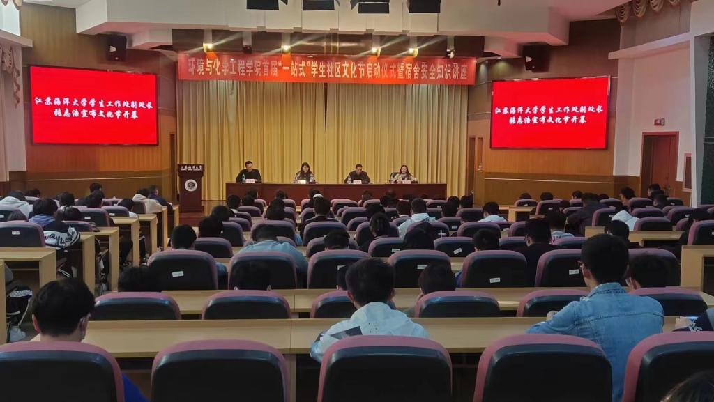 4月26日下午,环境与化学工程学院在文博楼报告厅举办了首届“一站式”学生社区文化节启动仪式暨宿舍安全知识讲座。学生工作处副处长张志浩、学院党委副书记王静、专业辅导员王学梅、苏成兄出席本次活动,学院各班级生活委员及宿舍长参加会议。