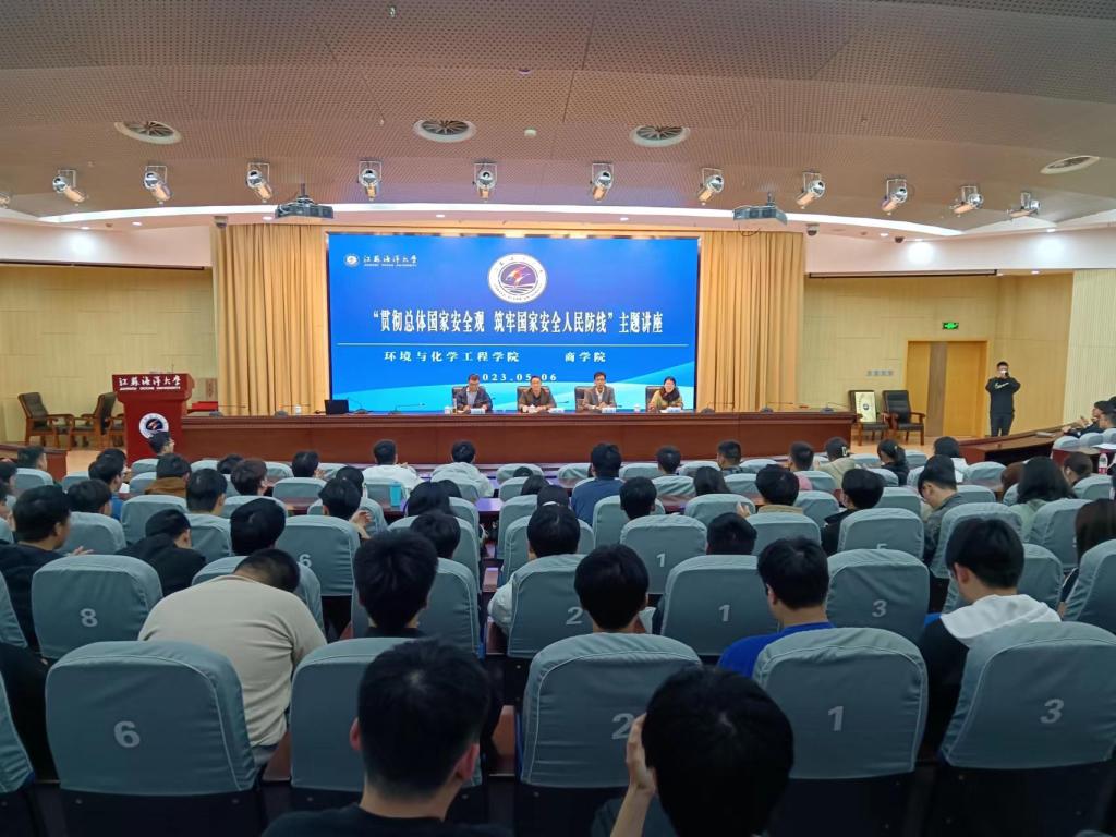 为引导广大师生树立总体国家安全意识,提升学院国家安全工作和教育的水平与能力,营造践行总体国家安全观、自觉履行维护国家安全义务的氛围,5月6日,环境与化学工程学院和商学院特邀连云港市国家安全局有关工作人员在会议中心黄海厅为学院师生开展“贯彻总体国家安全观 筑牢国家安全人民防线”国家安全教育专题讲座。讲座由市国安系统相关工作人员主讲,校保卫处处长姜兵、商学院党委副书记王智金、环境与化学工程学院党委副书记王静出席,辅导员和学生代表300余人参加专题讲座。