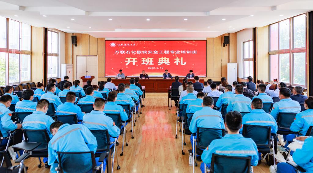 开班典礼上,舒伟向万联能源集团和连云港中油石油销售有限公司“安全工程专业培训合作基地”授牌。