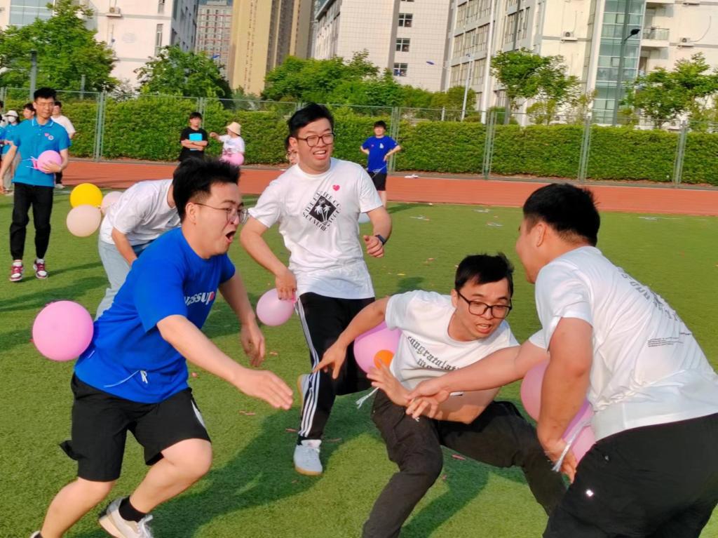 初夏的公园阳光微撒、清风吹拂,活动现场,绿树花草,教职工们随机分成三组,活动包含赶猪羊跑、旋风跑和托球跑等项目,每一项都充满了对体能与智力的考验,活动场面既激情如火又温馨和谐,大家配合默契,在竞争与欢笑中,增进了同事相互之间的感情,培养了大家的集体意识与共同归属感。活动结束后,大家举起手中的奖品,喜悦之情溢于言表。让我们通过现场活动图片感受大家欢快而热烈的气氛吧。