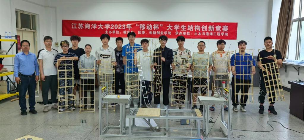 为培养学生的创新思维与团队精神,提高学生工程结构设计与实践能力,5月17日,由教务处、团委、创新创业学院主办,土木与港海工程学院承办的江苏海洋大学2023年“移动杯”大学生结构创新竞赛成功举办,副院长蔡小宁教授出席,何永福、李家伟、宋明志、高公略、王海若、骆辉、孙艺丹等专业教师担任评委。