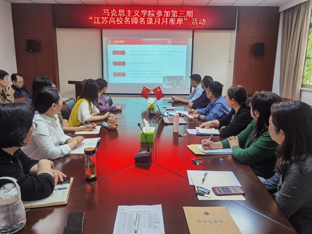 5月22日下午,马克思主义学院组织参加“江苏高校名师名课月月观摩”系列活动第三期观摩会。本次活动由首批江苏高校省级优秀基层教学组织南京师范大学“高校思政课教学创新团队”举办,南京师范大学马克思主义学院王刚教授主持。我校马克思主义学院设立分会场,并组织全院教师集中观摩。