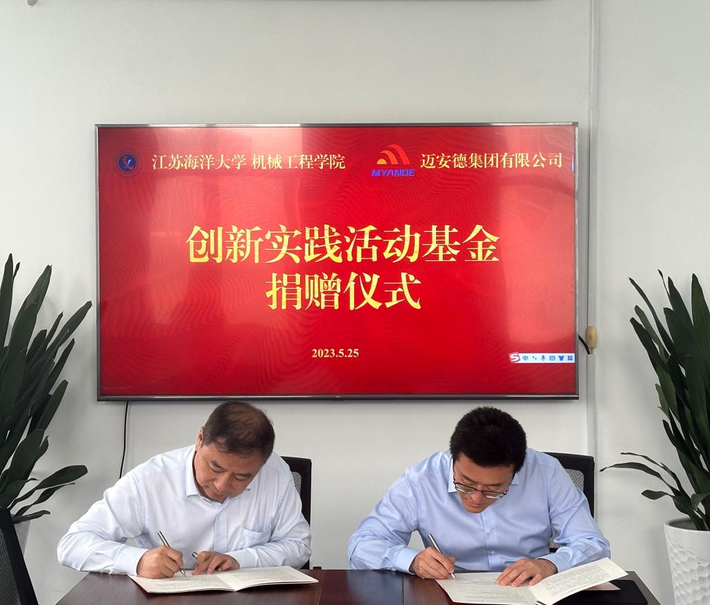 5月25日下午,机械工程学院在机械楼N302会议室举行“迈安德创新实践活动基金”捐赠仪式,迈安德集团有限公司副董事长汪沐、工程技术中心部长梁椿松、人力资源招聘经理金潇潇、机械工程学院院长张元良、党委副书记高勇、副院长贺毅强和就业秘书孙东晓出席了签约仪式。捐赠仪式由高勇主持。