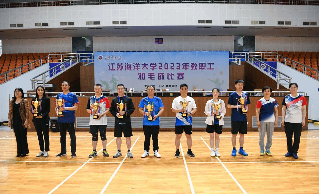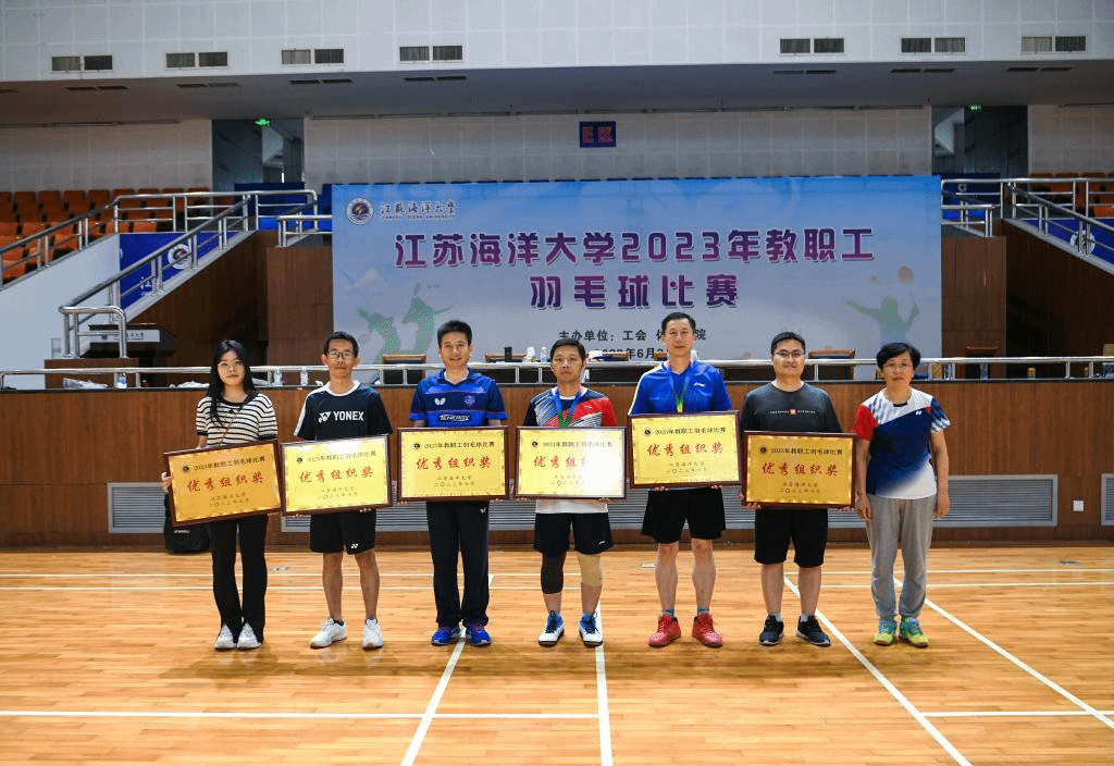 6月3日,我校在苍梧校区体育馆举办江苏海洋大学2023年度教职工羽毛球比赛,校党委副书记李梅英出席开幕式。本次比赛由校工会、体育学院主办。来自各分会共19个代表队160多名羽毛球爱好者参加了比赛。比赛分两个阶段,第一阶段为分组循环赛,各小组前二名进入第二阶段单淘汰赛。