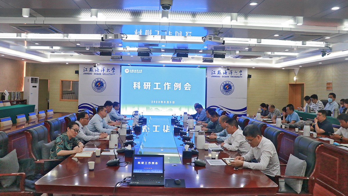 就进一步做好科研工作,他提出四个方面要求:一是要围绕服务重大战略需求和行业发展需要,开展有组织科研。要胸怀“国之大者”,坚持四个面向,围绕中心任务,在前瞻性思考、全局性谋划、系统性推进上下功夫,做到底数清,方向明,举措实。今年,学校组建跨学科跨学院创新团队自主设计研发全自动一体化浒苔打捞装备,用于规模化黄海绿潮打捞,已完成海试,结果显示:我校浒苔打捞装备适配性强,能够实现对不同水层浒苔的快速打捞,效率是传统打捞设备的3-4倍,且打捞过程实现了可视化,与设计预期相符合。这是学校围绕省重大需求发挥特色优势开展有组织科研的一次探索实践。各学院要面向行业企业重大需要,发挥优势,在有组织科研实践中勇于创造。二是要在强基提质上下功夫,有组织推进科技创新。要在国家级项目、省部级及以上成果奖项等重点工作上下功夫,内挖潜力,外聚合力,靶向发力,“一处落子满盘活”,实现科研工作稳中提质、稳中向好。要用足用好时间的空窗期,主动“请进来”“走出去”,加强对外联络,促进学术交流,做好国家级项目的跟踪服务、省部级成果奖的申报组织工作,做好国家重点研发计划项目、高级别成果奖项的联合申报工作。三是要在构建生态上下功夫,有组织推进产学研合作。要充分发挥二级办学主体能动作用,加大力度主动 “走出去”“请进来”多渠道多形式开展产学研对接与成果推介,实现科研经费稳健增长、成果转化加速落地。要精诚服务,巩固深化既有合作,同时要挖掘用好校友资源,主动开拓合作渠道,扩大朋友圈,画好同心圆,推进政产学研合作提能增效,构建“校地融合、校企链合、平台聚合、资源整合、服务集合”“五合型”社会服务生态体系。四是要在清廉科研建设上做服务,护航教师潜心科研。要常态做好各级各类科研政策宣传贯彻工作,让一线科研教师明明白白制度政策,在享受政策红利、潜心科研安心科研的同时,筑牢规矩意识、底线意识,坚守意识形态、科研伦理、学术不端、科研经费“四条底线”,坚决抵制科研腐败行为,营造良好的科研生态环境。