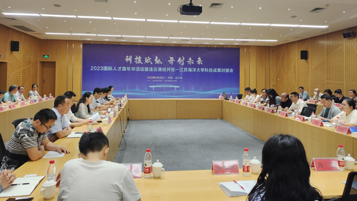 为推动学校科技服务与地方产业融合发展,促进学校科技成果转移转化,助推科技副总项目及省产学研项目的申报工作,6月28日上午,我校与连云港市经济技术开发区联合举办了题为“科技赋能 开创未来——2023国际人才嘉年华暨连云港经开区-江苏海洋大学科技成果对接会”。