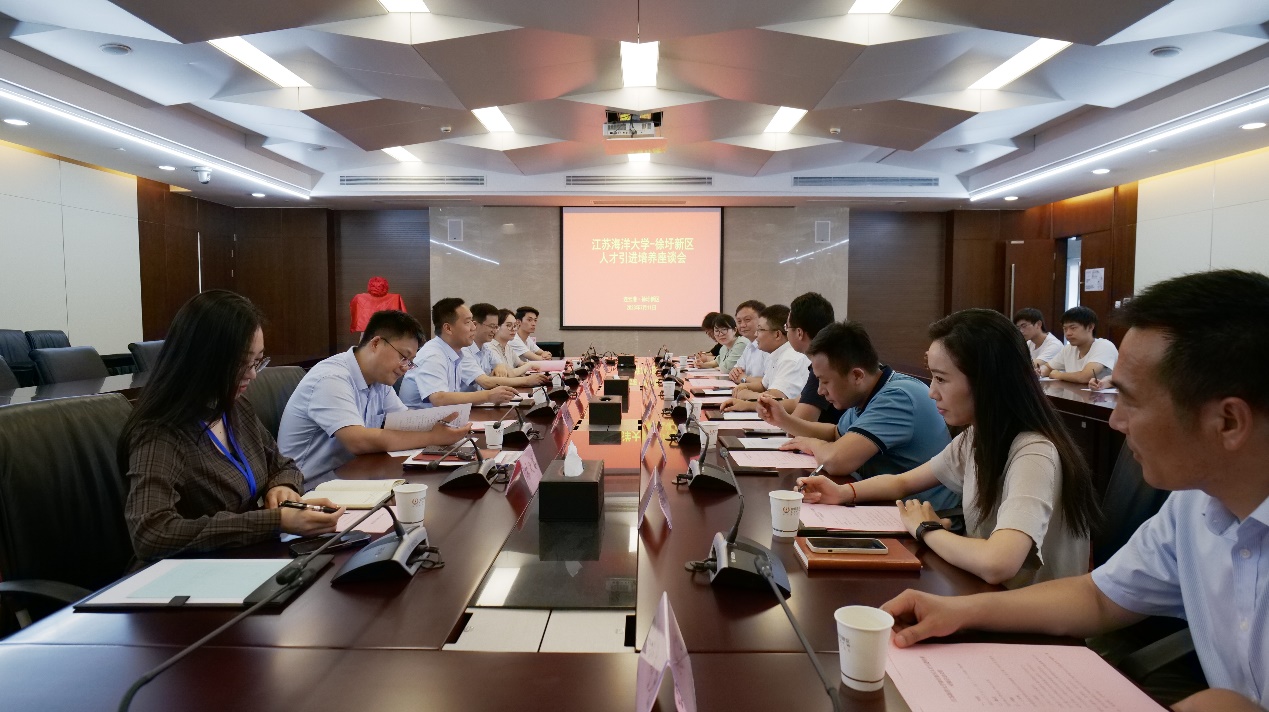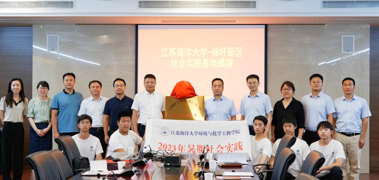 研学结束后,徐圩新区人社中心与环境与化学工程学院举行社会实践基地签约暨揭牌仪式。座谈会上,双方就人才需求与引进培养进行现场交流,段向东介绍了徐圩新区招才、引才、留才的基本情况及学校在新区的就业情况。张明星就环化学院办学定位、专业设置、产教融合以及人才培养的情况进行交流。安军伟介绍了徐圩新区近年的人才流动情况以及未来的战略部署,表达了与学校开展产教融合、校企合作的意愿,并着重就跨专业、分层次、分类别进行人才培养方面提出了具体要求。朱国军指出,徐圩新区作为全国七大石化产业基地之一,加强与徐圩新区交流合作,有利于进一步深化江苏海洋大学“扎根淮海、面向黄海、辐射沿海、走向深海”的服务定位。把企业基地变成大学生社会实践场所,共谋共建优秀人才培养,实现了学校、企业和学生的共赢。讲话中,他肯定社会实践队员们在了解专业前景、树立专业自信的同时,用学生视角记录徐圩、宣传徐圩,为徐圩“代言”,勉励同学们在实践中积极践行社会主义核心价值观,自觉培养创新意识和实践能力,把家国情怀融入不懈奋斗,在成长成才的同时服务好地方经济社会发展。