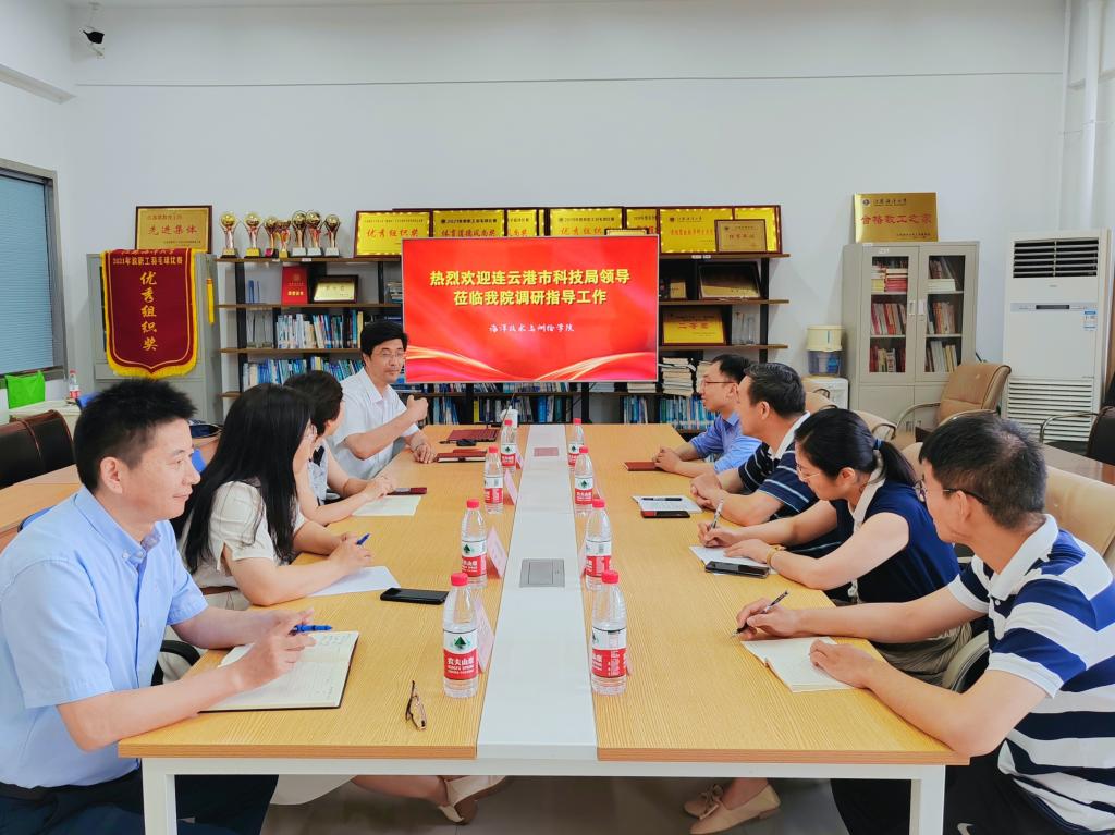 7月25日上午,连云港市科技局党组成员、三级调研员赵国师带队来我校海洋技术与测绘学院调研,市科技局外国专家与对外合作处处长杜强、科员穆玲玲陪同调研。我校国际合作交流处处长韩小杰以及海洋技术与测绘学院党委书记王晶、院长孙佳龙、党委副书记田扬启、在市科技局挂职的田祥雨博士参加会议。