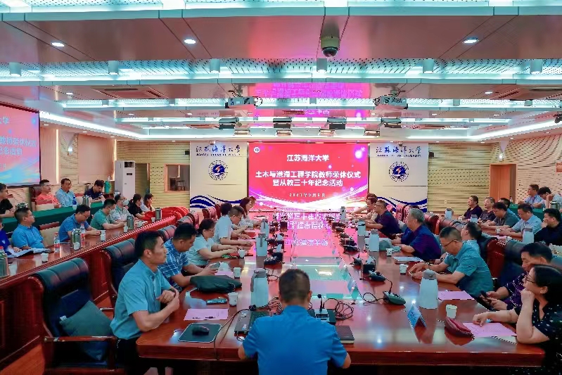 为大力弘扬尊师重教的优良风尚,感谢老教师几十年如一日的默默坚守和无私奉献,增强全体教职工的幸福感与荣誉感,9月6日下午,土木与港海工程学院于会议中心东海厅举行教师荣休仪式暨从教三十年纪念活动。校离退休工作处处长钱汉珍、人事处副处长朱传云应邀参加纪念活动,学院党委书记王改红主持活动。