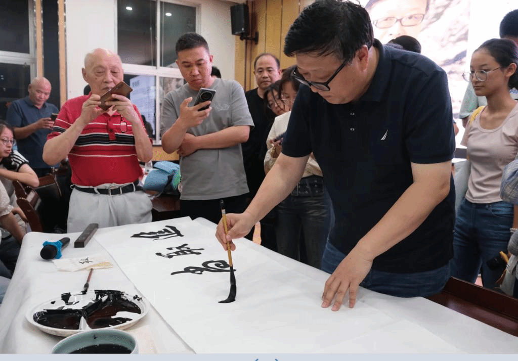 座谈会的最后,穆家善教授回答了同学们提出的问题,并现场表演书法,为学院题写院风、院训。