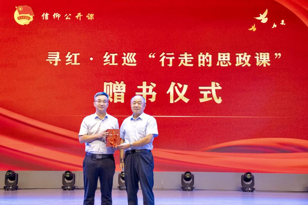 公开课上,市委党史工作办公室、市地方志编纂委员会办公室副主任赵廷旗代表中共连云港市委党史工作办公室向我校捐赠了756本书籍。希望同学们能够学史明理、学史增信、学史崇德、学史力行,坚定理想信念、厚植爱国情怀。