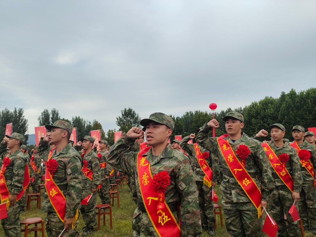 鲜艳的八一军旗在风中猎猎作响,入伍新兵高举右拳庄严宣誓:“我是中国人民解放军军人,我宣誓,服从中国共产党的领导,全心全意为人民服务。”铮铮誓言,响彻云霄。