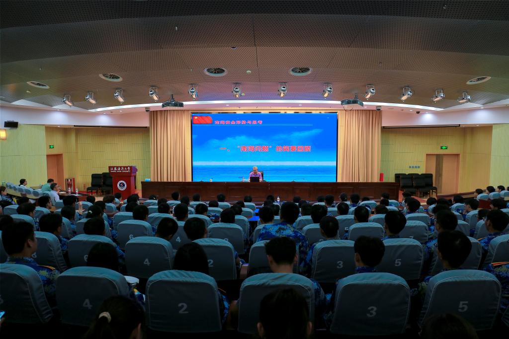 杨新从南海问题的简要回顾、南海安全形势与发展趋势、坚定维护海洋安全信心与思考三个方面对南海局势进行深入分析,语言幽默、见解独到、举例贴合,让同学们对南海形势有了更深入的了解,增强了忧患意识,进一步树立了国家安全观。他鼓励同学们要努力学习、热爱国防、报效祖国,肩负起建设海洋强国,维护海洋安全的历史使命。