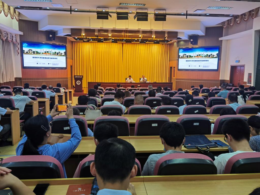为了进一步提高我校本科教学研究水平和人才培养质量,更好地做好新一轮省高等教育教学改革研究课题申报工作,9月19日下午,我校特邀江苏省高等教育学会学术副部长、前秘书长、南京信息工程大学高等教育研究所所长吴立保研究员来我校作题为“数智时代本科教育改革与教学研究”的报告。各学院教学院长、教师代表以及教务处、教学质量管理处(教师教学发展中心)以及信息化中心的负责人参加了报告会。报告会由副校长马廷淮主持。